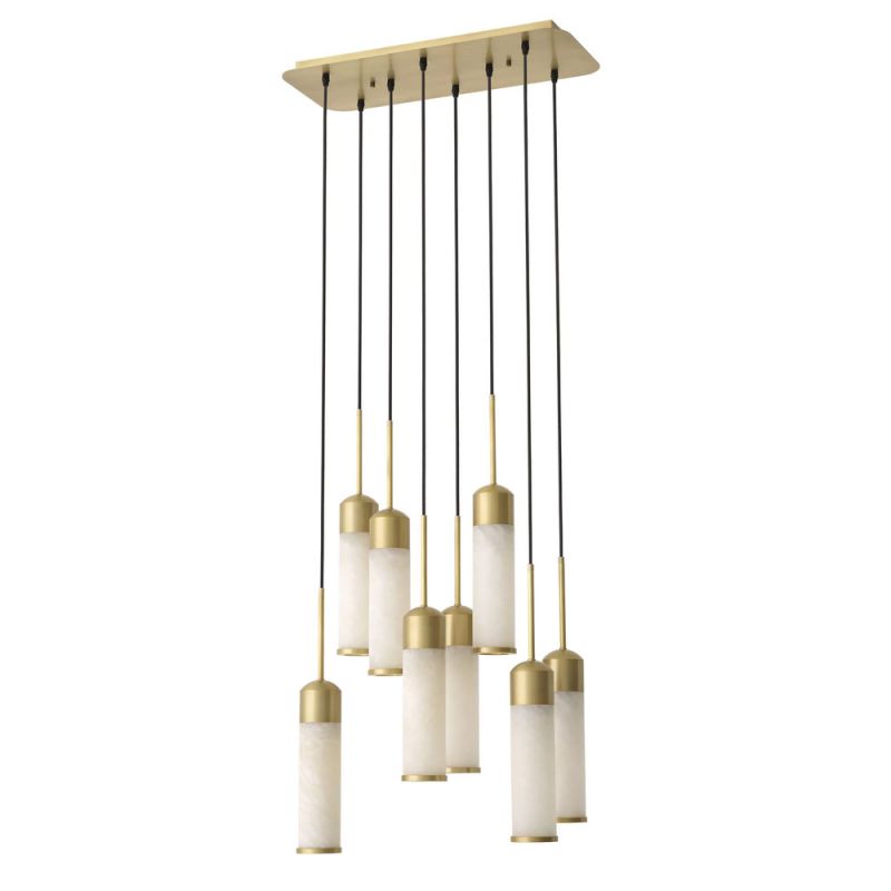 | Descriere | Lustra realizata din fier finisaj alama antica, aluminiu si abajururi din alabastru |