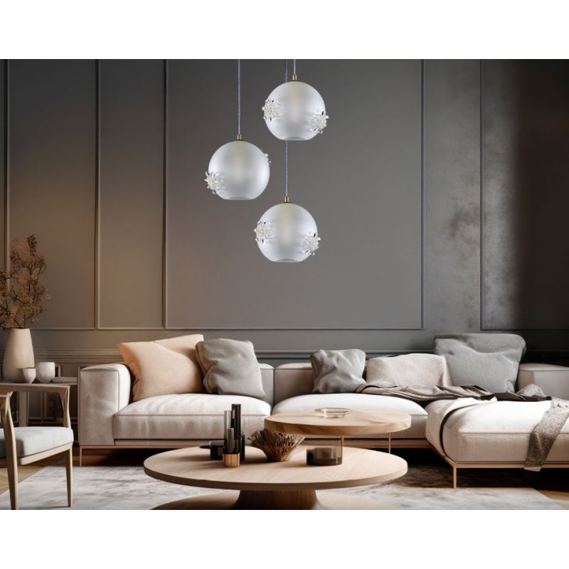 | Materiale | metal alama disponibil in 4 finisaje: alama polisata-PB, alama finisaj mat-MB, nickel polisat-NI sau nickel finisaj mat, abajur din sticla, doi fulgi de zapada din cristal Exclusive |