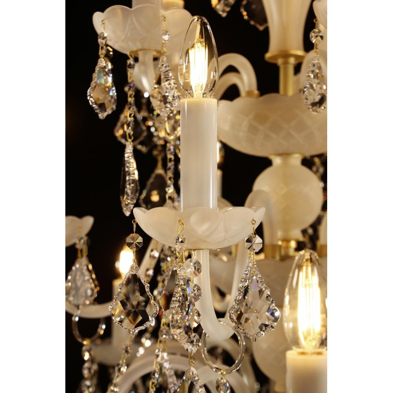 | Materiale | Cristal Bohemia Exclusive, metal alama disponibil in finisaj auriu sau argintiu, sticla alba sablata |