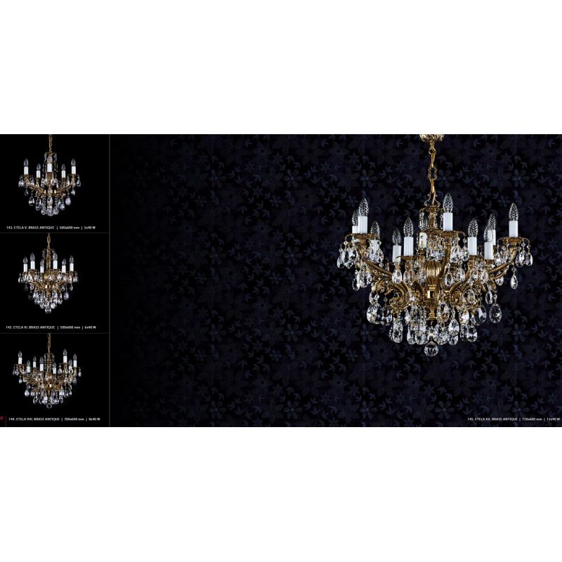 Lustra eleganta decorată cu garnituri de cristal Crystal Exclusive. Componentele din cristal și piesele metalice fine în finisaj auriu, argintiu sau alte suprafețe fac o combinație extraordinară. Lustra din cristal, combinată în special cu alte lustre de cristal sau corpuri de iluminat, este potrivit pentru orice interior, modern sau tradițional.