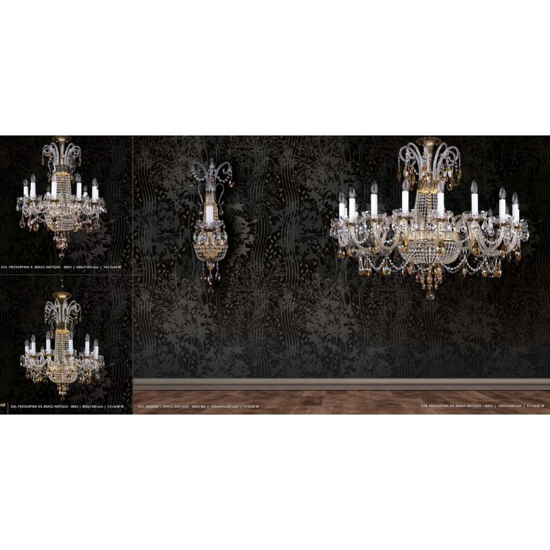 Cristalul utilizat are un conținut de până la 30% PbO, specific cristalului Bohemia, permițând realizarea unor forme variate de pandantive, inclusiv variante transparente sau colorate, în funcție de colecție. Structura metalică a corpurilor de iluminat este disponibilă, în funcție de model, în finisaje precum alamă auriu sau galvanizat argintiu.