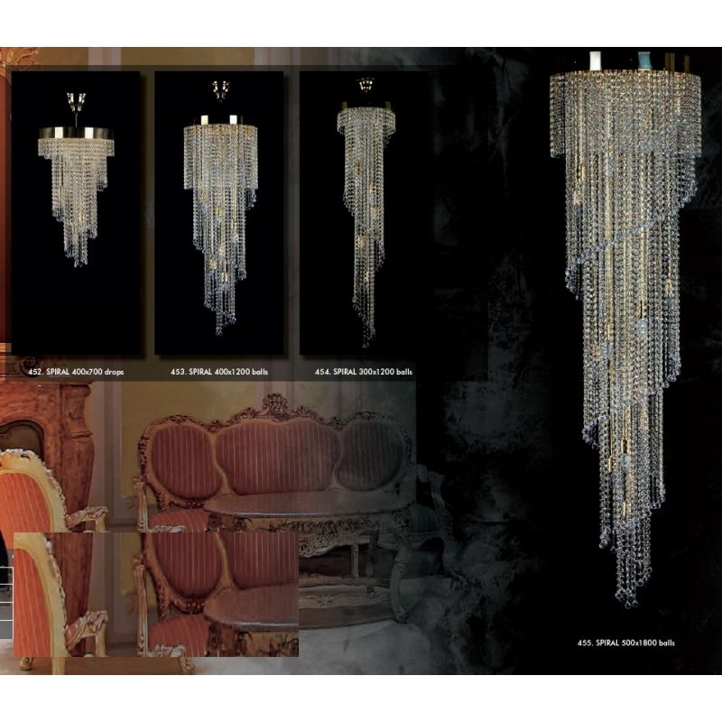 Cristalul utilizat are un conținut de până la 30% PbO, specific cristalului Bohemia, permițând realizarea unor forme variate de pandantive, inclusiv variante transparente sau colorate, în funcție de colecție. Structura metalică a corpurilor de iluminat este disponibilă, în funcție de model, în finisaje precum alamă auriu sau galvanizat argintiu.