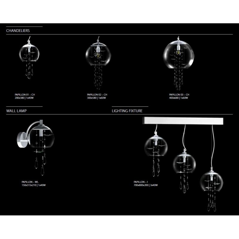 | Descriere | metal alama disponibil in 4 finisaje: alama polisata-PB, alama finisaj mat-MB, nickel polisat-NI sau nickel finisaj mat, cristal Exclusive, fluturi si abajur din sticla |