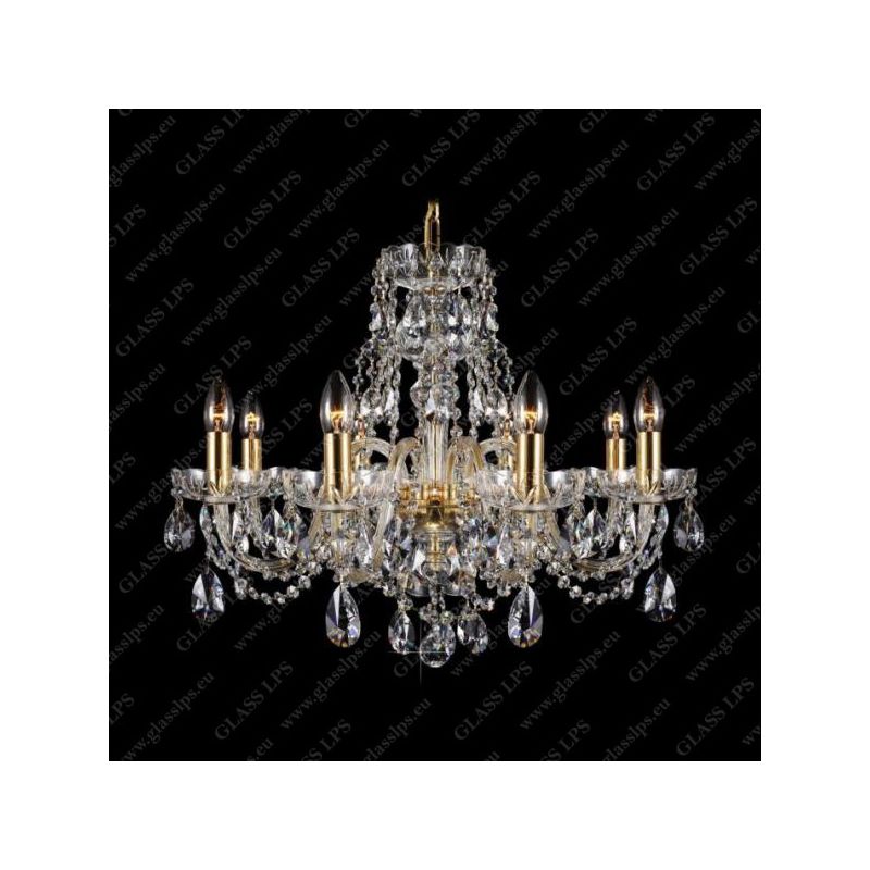 Candelabru cu 5 brate este decorat cu garnituri de cristal Bohemia si brate din sticla. Componentele din cristal și sticlă și piesele metalice fine în finisaj auriu sau argintiu fac o combinație uimitoare. Lumina lustrei de cristal, combinată în special cu alte candelabre de cristal, este potrivită pentru orice interior, modern sau tradițional.
