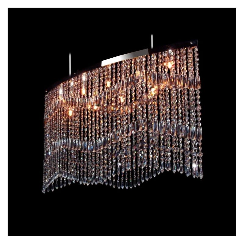 Lustra moderna cristal Bohemia, L-100cm. Componentele din cristal și piesele metalice fine în finisaj auriu sau argintiu fac o combinație extraordinară. Lustra din cristal, combinată în special cu alte lustre de cristal sau corpuri de iluminat, este potrivit pentru orice interior, modern sau tradițional.