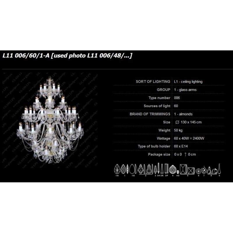 | Descriere | Cristal Bohemia, metal alama disponibil in finisaj brass sau nickel, sticla, brate din sticla, tubul de la fasung alb si cablul din brate alb |