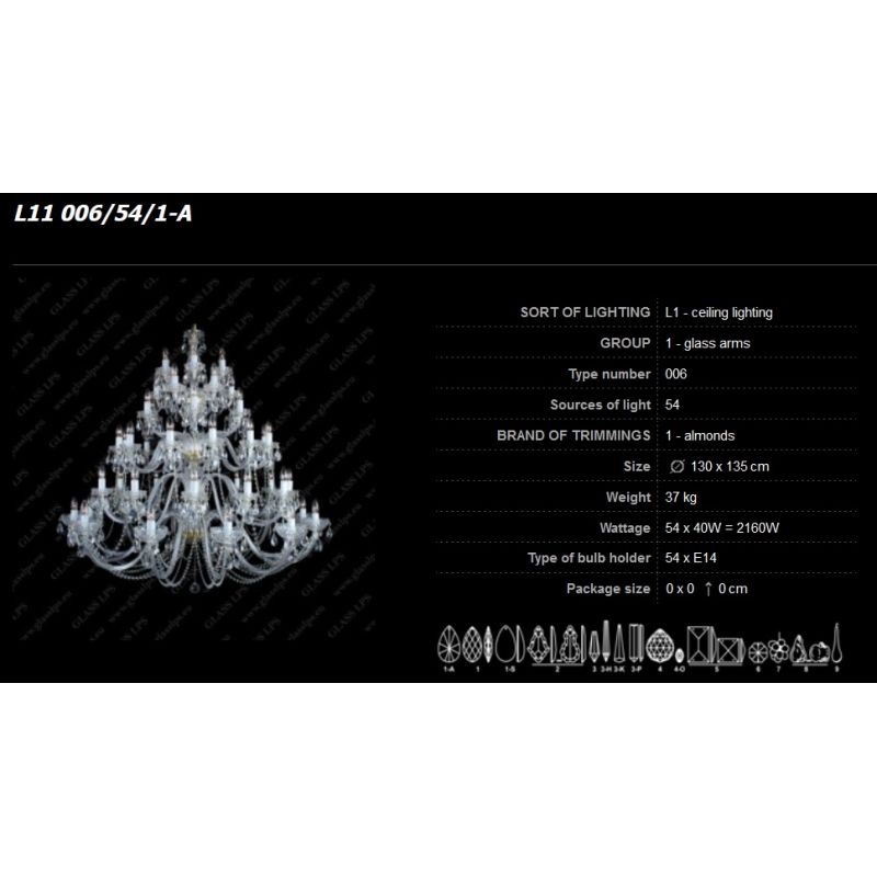 | Descriere | Cristal Bohemia, metal alama disponibil in finisaj brass sau nickel, sticla, brate din sticla, tubul de la fasung alb si cablul din brate alb |