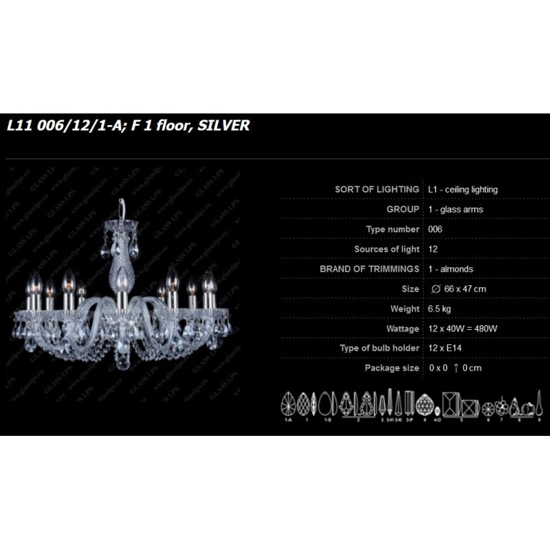| Descriere | Cristal Bohemia, metal alama disponibil in finisaj gold sau silver, sticla, brate din sticla, tubul de la fasung in finisajul metalului ales |