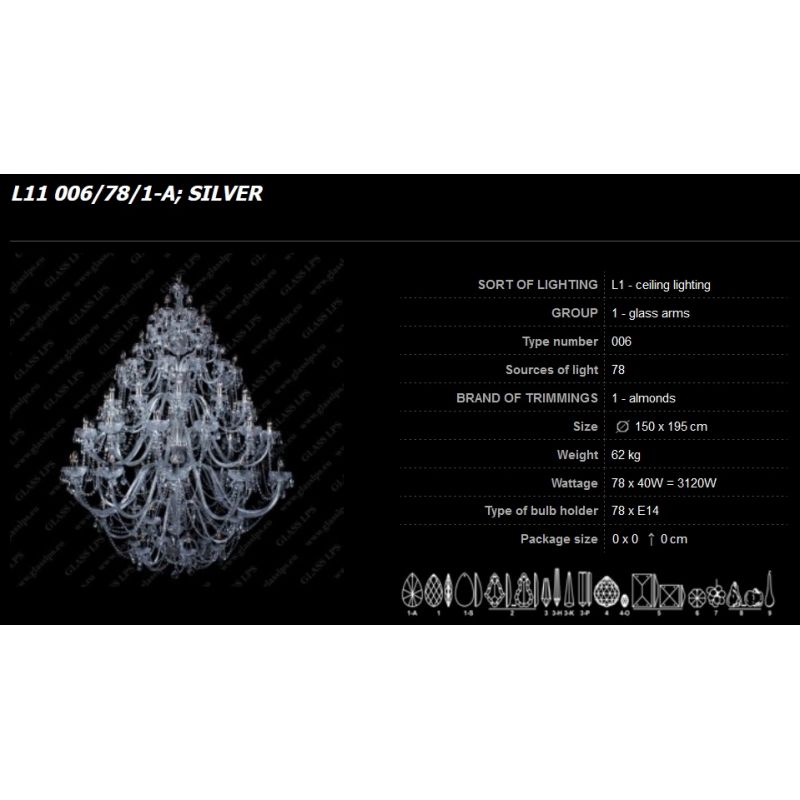 | Descriere | Cristal Bohemia, metal alama disponibil in finisaj gold sau silver, sticla, brate din sticla, tubul de la fasung in finisajul metalului ales |