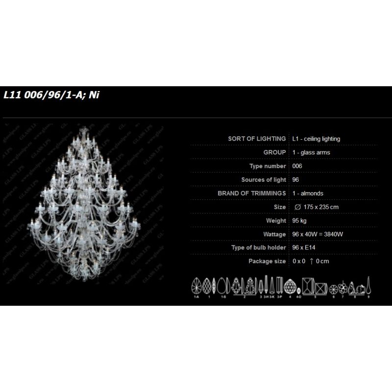 | Descriere | Cristal Bohemia, metal alama disponibil in finisaj brass sau nickel, sticla, brate din sticla, tubul de la fasung alb si cablul din brate alb |