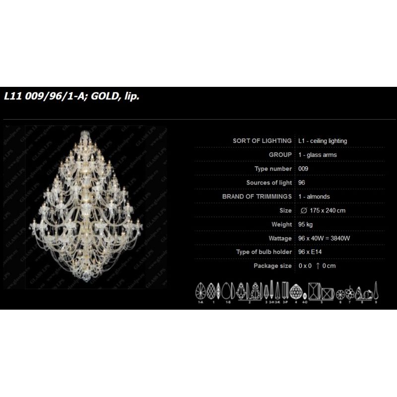 | Descriere | Cristal Bohemia, metal alama disponibil in finisaj gold sau silver, sticla, brate din sticla, tubul de la fasung in finisajul metalului ales |