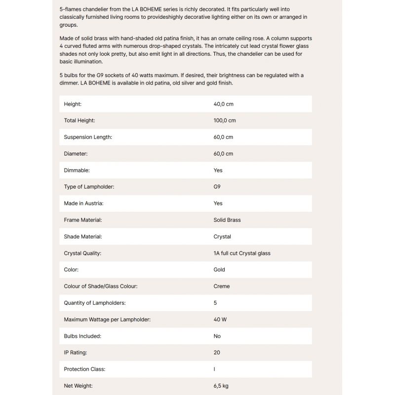 | Putere | 5x 40Watt bec G9, exclus din pret |