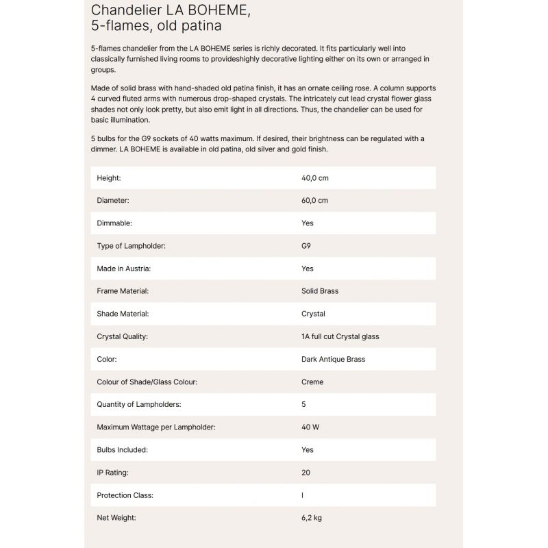 | Materiale | alama solida finisaj alama antique inchis (dark antique brass), cristal (1A full cut Crystal glass) |