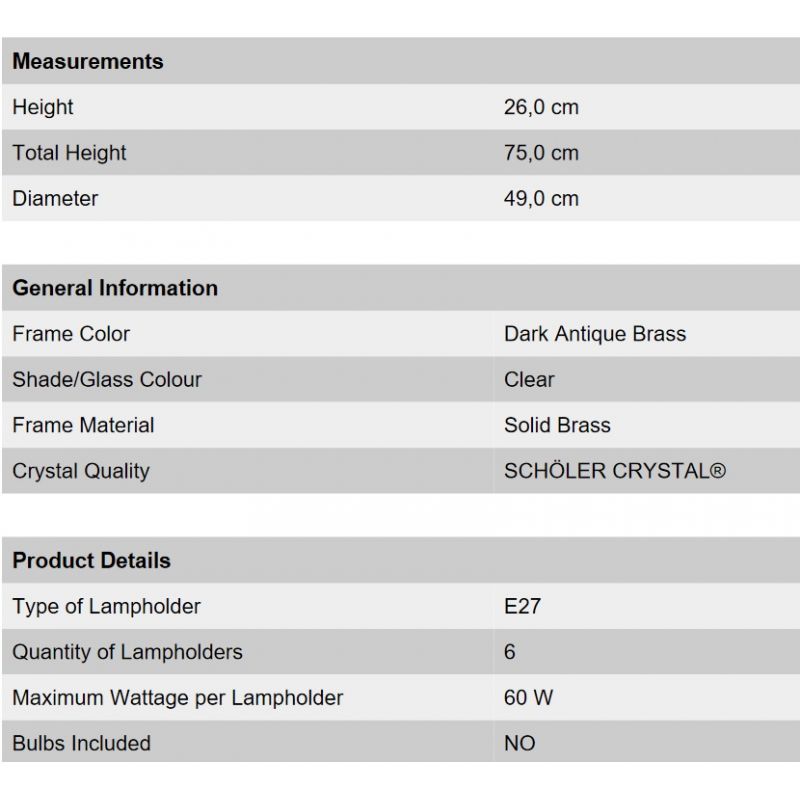 | Putere | 6x 60 Watt E27, bec exclus din pret |