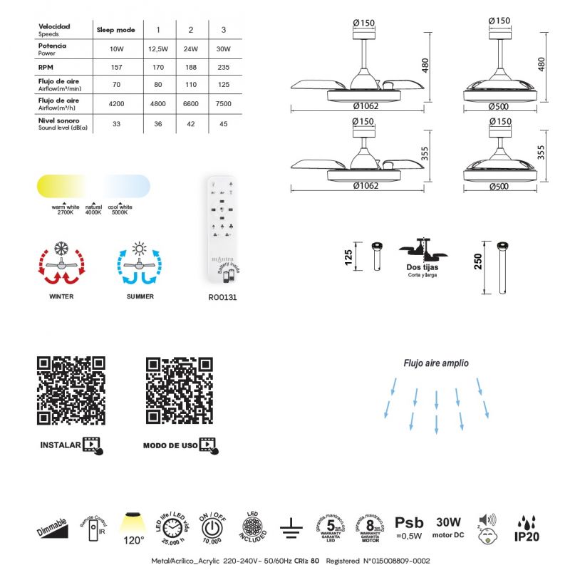 | Putere | motor:30W; 60W LED dimabil, 2700-5000K; 3300Lm/6600Lm + telecomanda inclusa in pret |