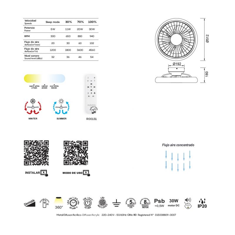 | Putere | motor:30W; 55W LED dimabil, 2700-5000K; 4100Lm/5700Lm + telecomanda inclusa in pret |
