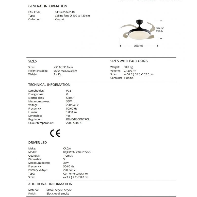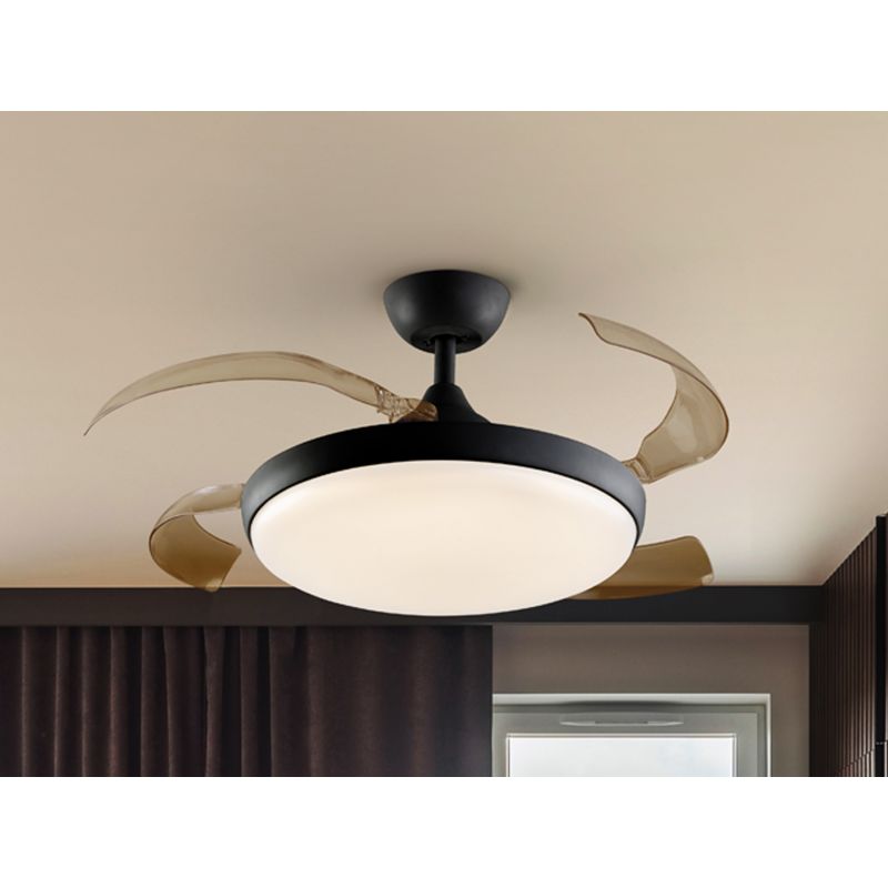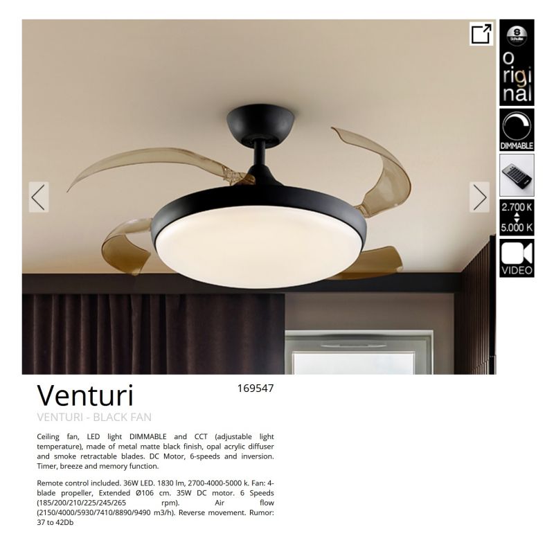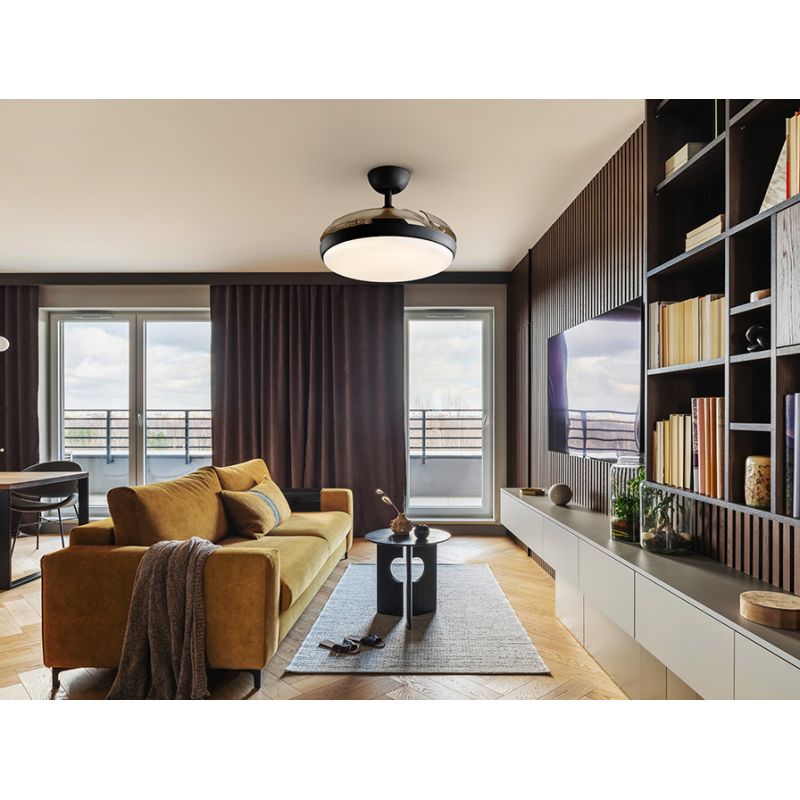 | Informatii produs: | lustra LED cu ventilator si telecomanda si lame retractabile, miscare reversibilă (functie vara/iarna), motor DC 38W, 6 viteze (185/200/210/225/245/265rpm) |
