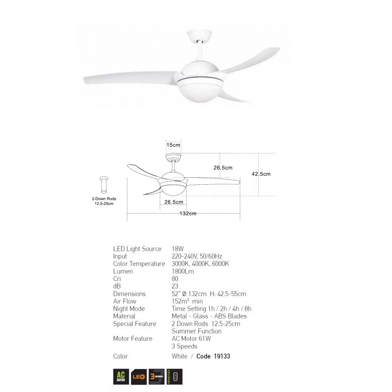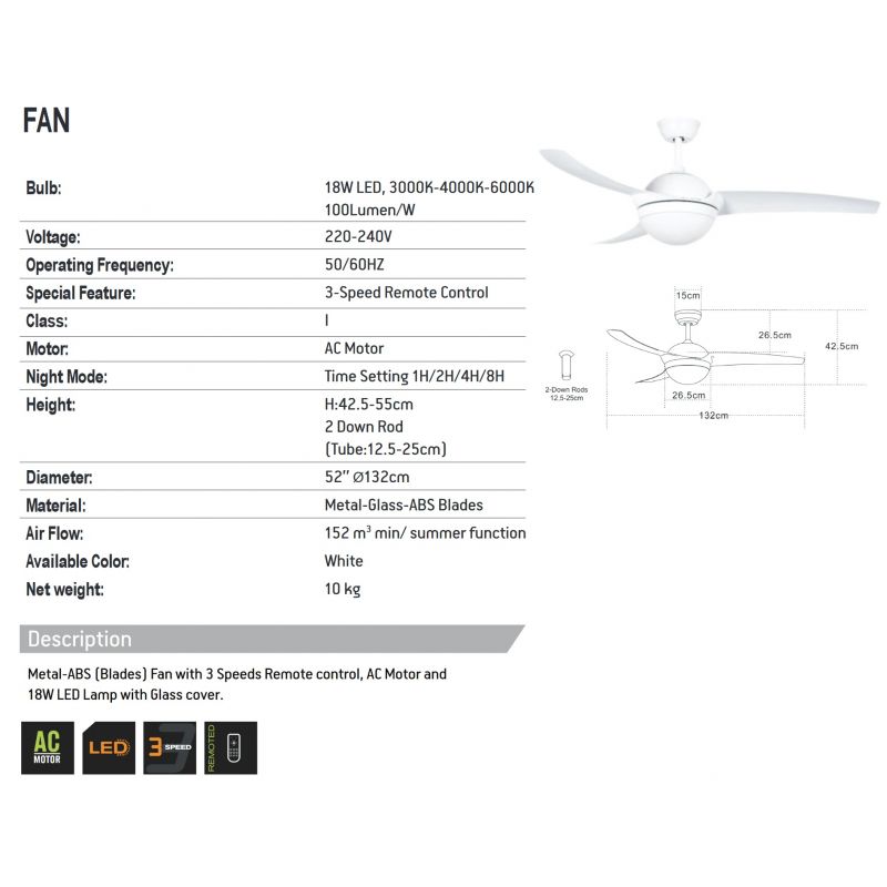 | Informatii produs: | lustra LED cu ventilator cu motor DC 61W, 3 viteze reglabile din telecomanda, miscare cu functie vara |