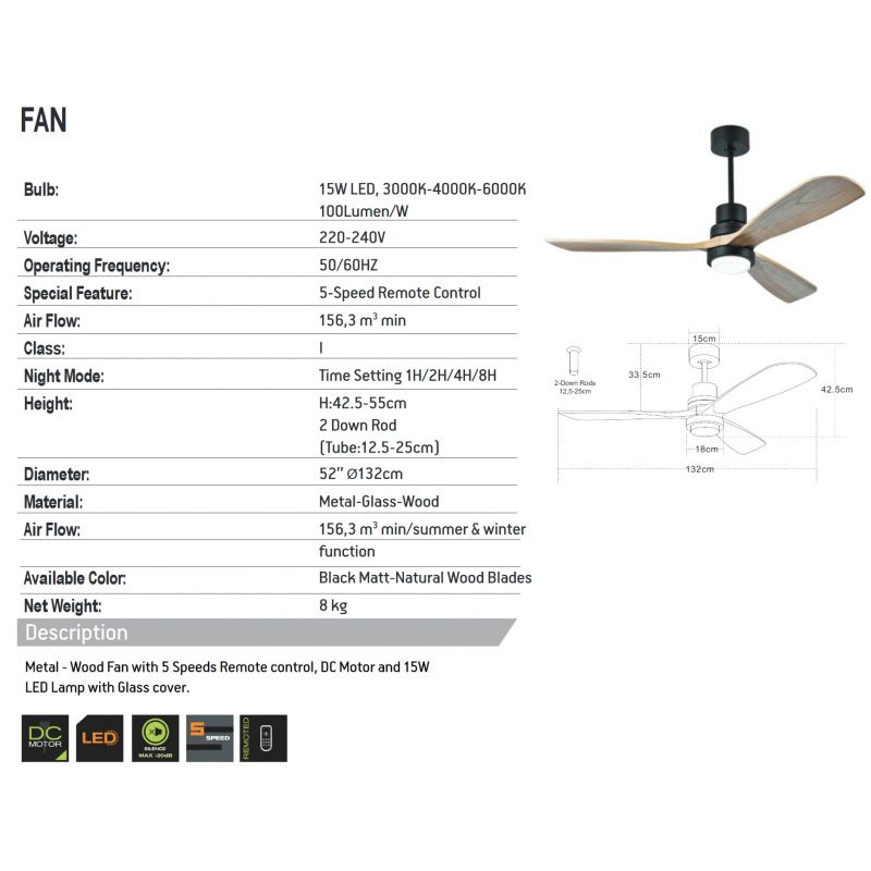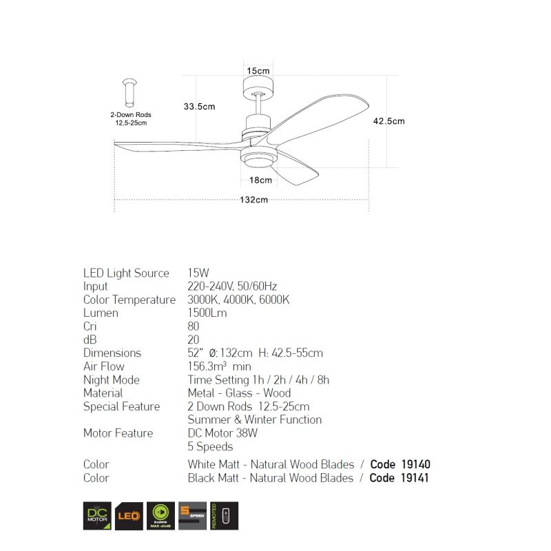 | Informatii produs: | lustra LED cu ventilator cu motor DC 38W, 5 viteze reglabile din telecomanda, miscare reversibila (functie vara/iarna) |