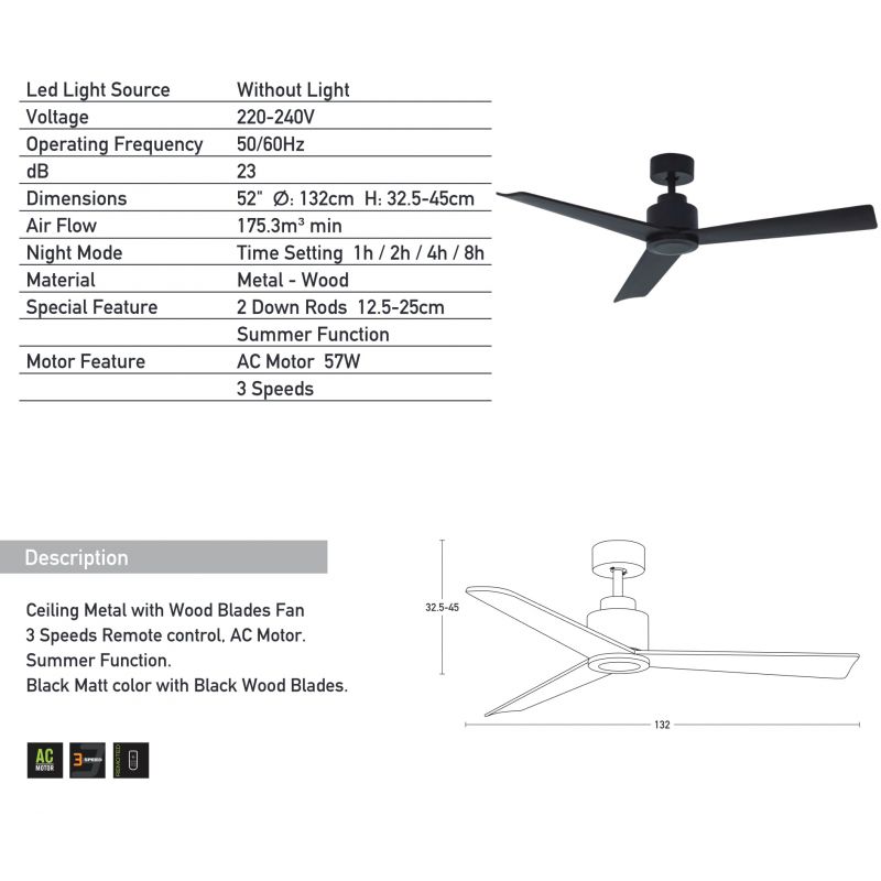 | Informatii produs: | ventilator de tavan cu motor DC 57W, 3 viteze reglabile din telecomanda, miscare cu functie vara |