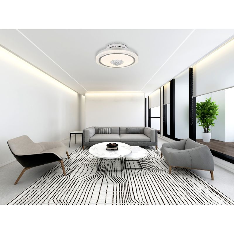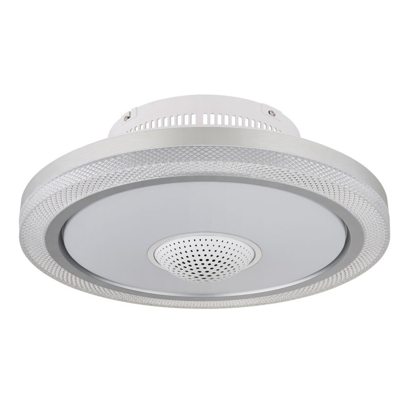 | Descriere | metal alb mat, aluminiu, acrilic cu efect de cristal clar, plastic alb, dimmable, mai multe niveluri prin comutator de perete, telecomandă |