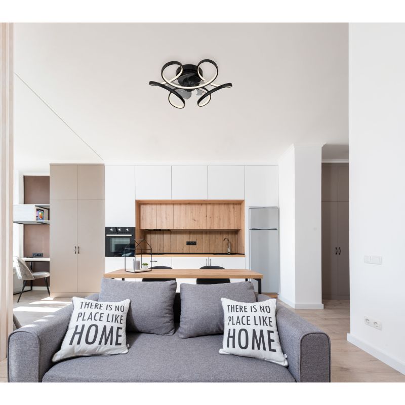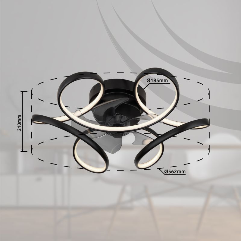 | Informatii produs: | Lustra LED cu ventilator, mai multe niveluri prin comutator de perete, memorie si telecomandă |