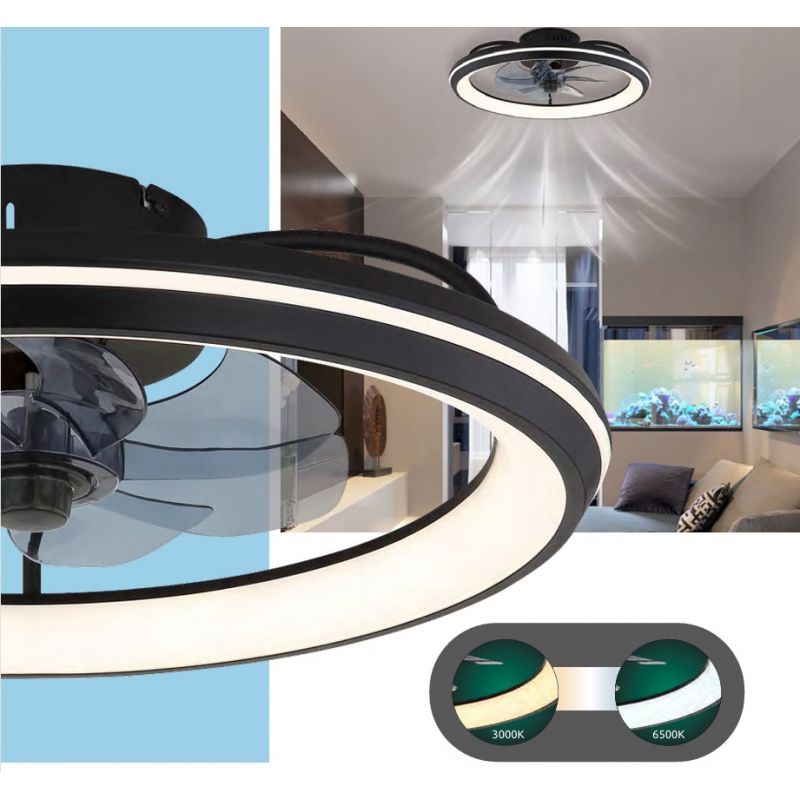 | Informatii produs: | Lustra LED cu ventilator, mai multe niveluri prin comutator de perete, memorie si telecomandă |