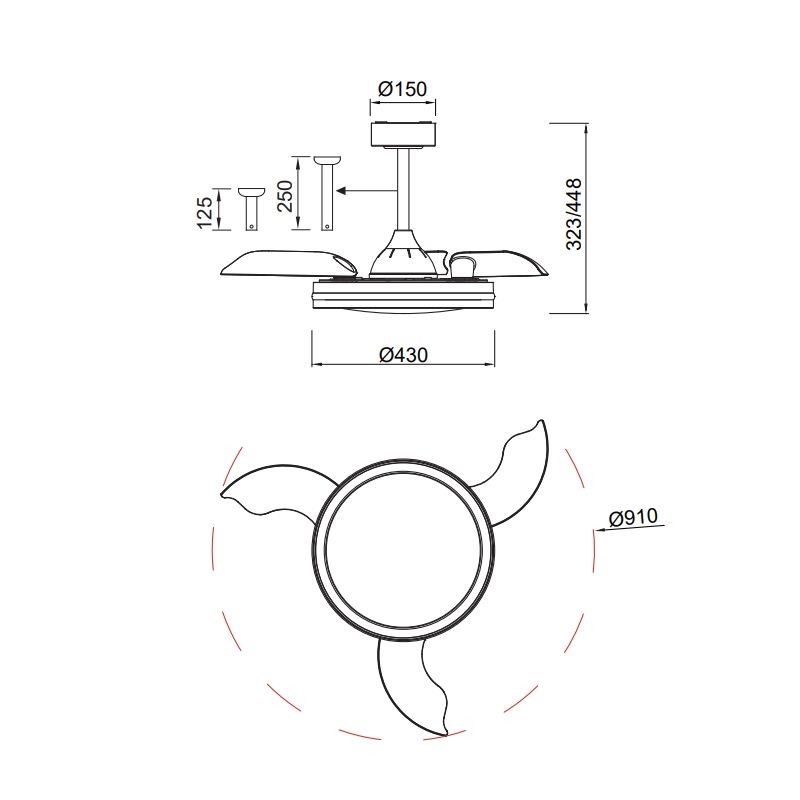 | Dimensiuni | diametru lustra:43cm; diametru ventilator:91cm; inaltime (2 tije) minim 32,3cm- maxim 44,8cm |