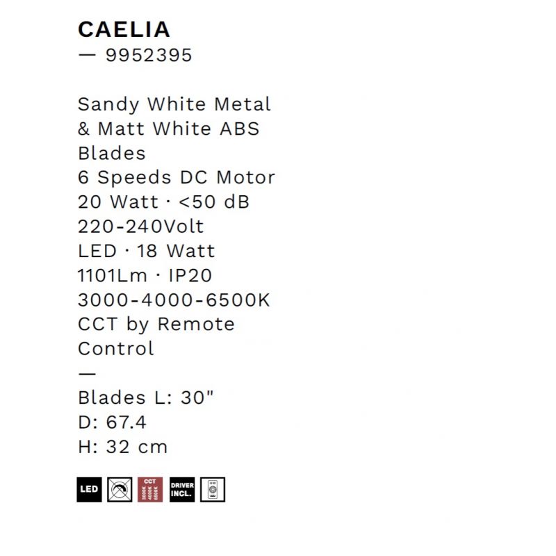| Putere | motor DC 20Watt , LED 18Watt, 1101Lm 3000-4000-6500K CCT, 6 viteze reglabile din telecomanda inclusa |