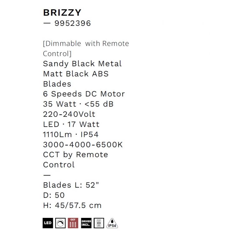 | Putere | motor DC 35Watt , LED 17Watt, 2190Lm 3000-4000-6500K CCT, IP54, 6 viteze reglabile din telecomanda inclusa |