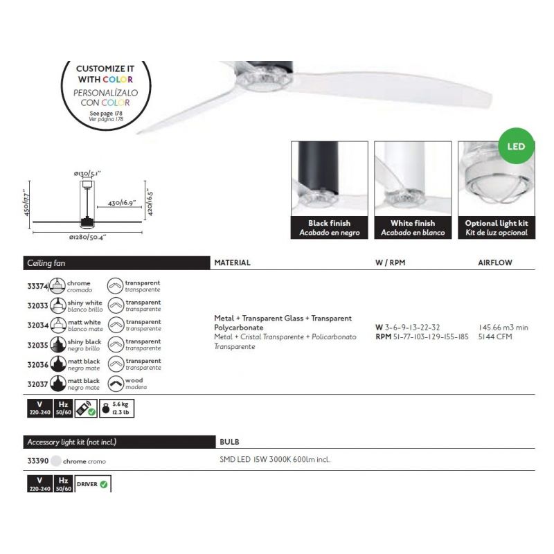 | Informatii produs: | lustra cu ventilator si telecomanda, cu functie reversibila iarna-vara, 6 trepte de viteza reglabile 4-6-9-13-22-32 Watt si 51-77-103-129-155-185 rpm. |