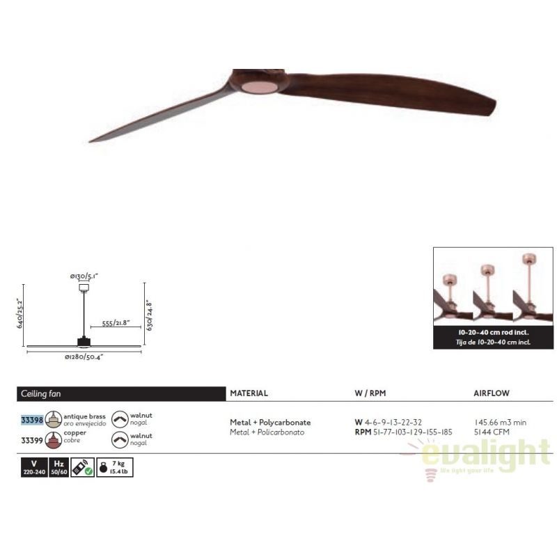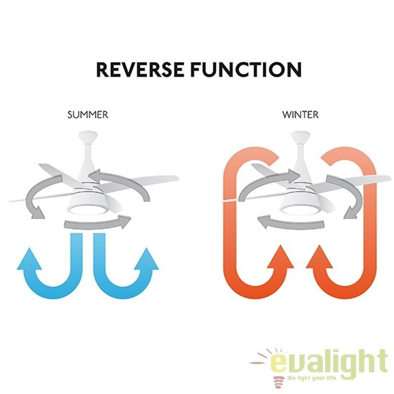 | Informatii produs: | ventilator cu telecomanda, cu functie reversibila iarna-vara, 6 trepte de viteza reglabile 4-6-9-13-22-32 Watt si 51-77-103-129-155-185 rpm. |