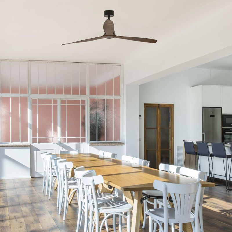 Ventilator cu telecomanda design modern, control de la distanta inclus cu posibilitatea reglarii celor 6 viteze de rotatie, dotat cu functie reversibila iarna-vara astfel încât sa-l puteti utiliza si în timpul iernii, îmbunatatind astfel eficienta sistemului dumneavoastra de încalzire. Ventilatorul de tavan este ideal pentru zilele călduroase de vară.