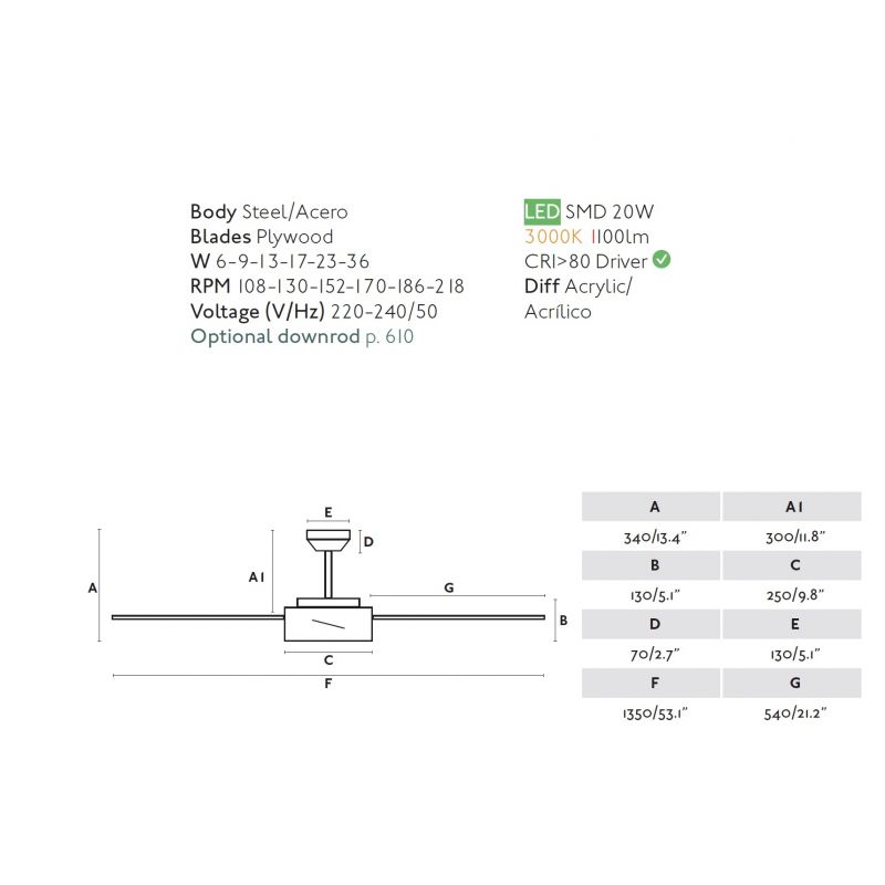 | Descriere | motor din otel finisaj alb, lame plywood nuanta alba, difuzor acrilic alb |