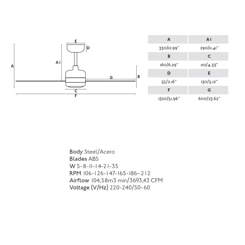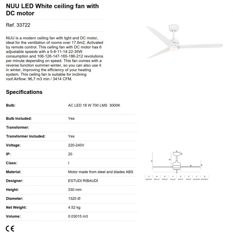 | Descriere | motor din otel AC finisaj alb mat, lame din ABS nuanta alb mat, difuzor acrilic alb |