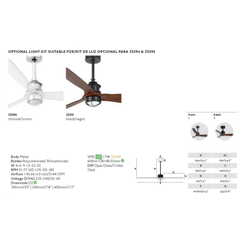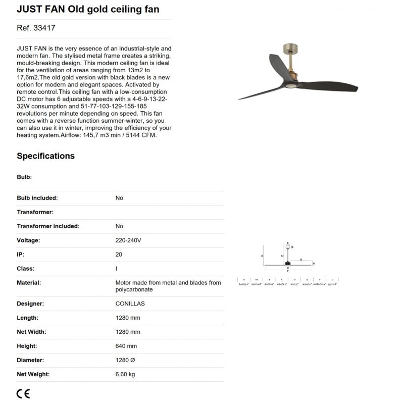| Descriere | motor din metal finisaj alama antic, lame din policarbonat negru mat, (optional kit iluminat LED ref. 33391 exclus din pret) |