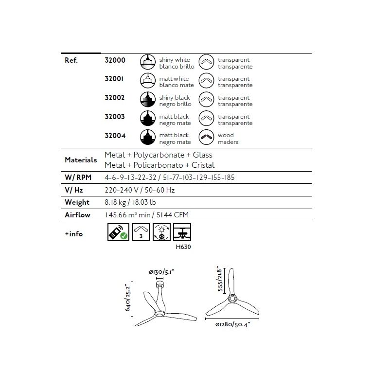 | Materiale | motor din metal, sticla, lame din policarbonat |