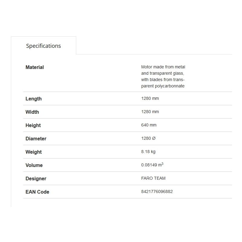 | Materiale | motor din metal, sticla, lame din policarbonat |
