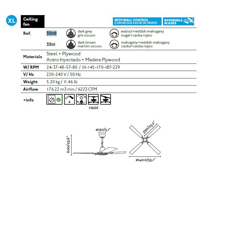 Informatii produs: | ventilator cu functie reversibila iarna-vara, 5 trepte de viteza reglabile 25/37/46/53/70 Watt si 115/150/170/190/220 rpm, operat cu comutator de perete inclus. |