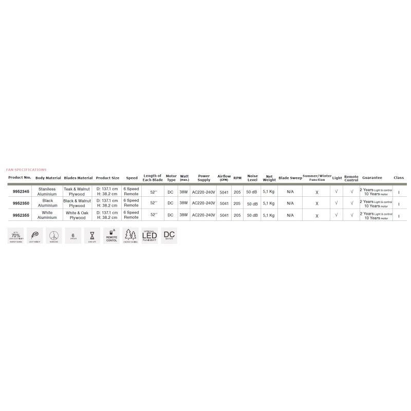 | Putere | motor DC 38W cu 6 viteze de rotatie controlat din telecomanda |