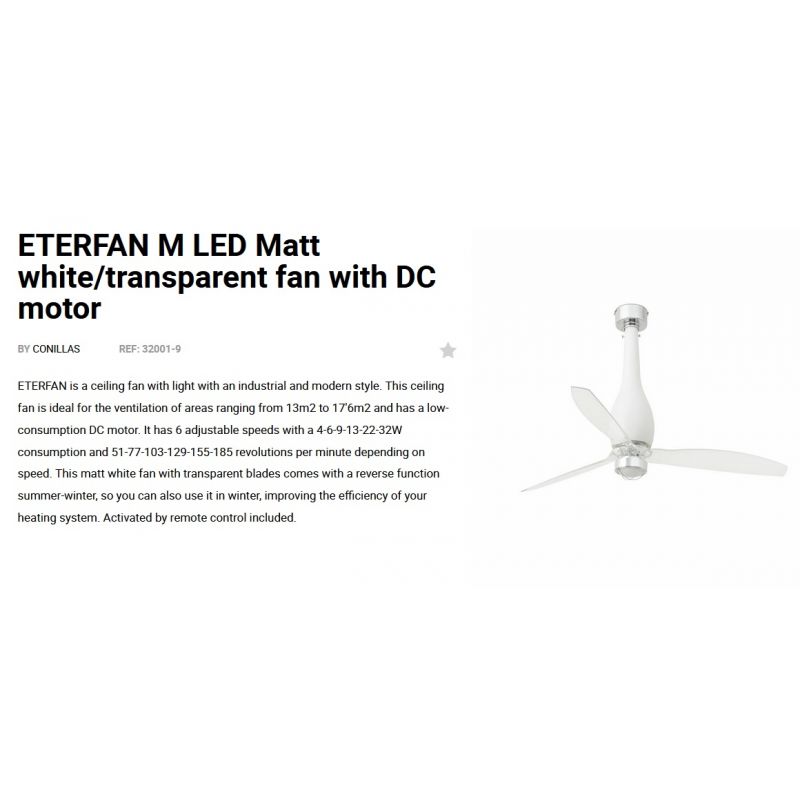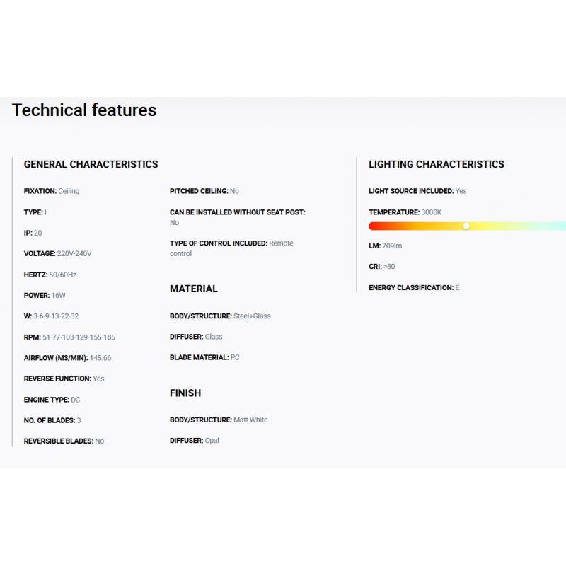 | Informatii produs: | lustra cu ventilator si telecomanda, cu functie reversibila iarna-vara, 6 trepte de viteza reglabile3-6-9-13-22-32Watt si 51-77-103-129-155-185rpm. |