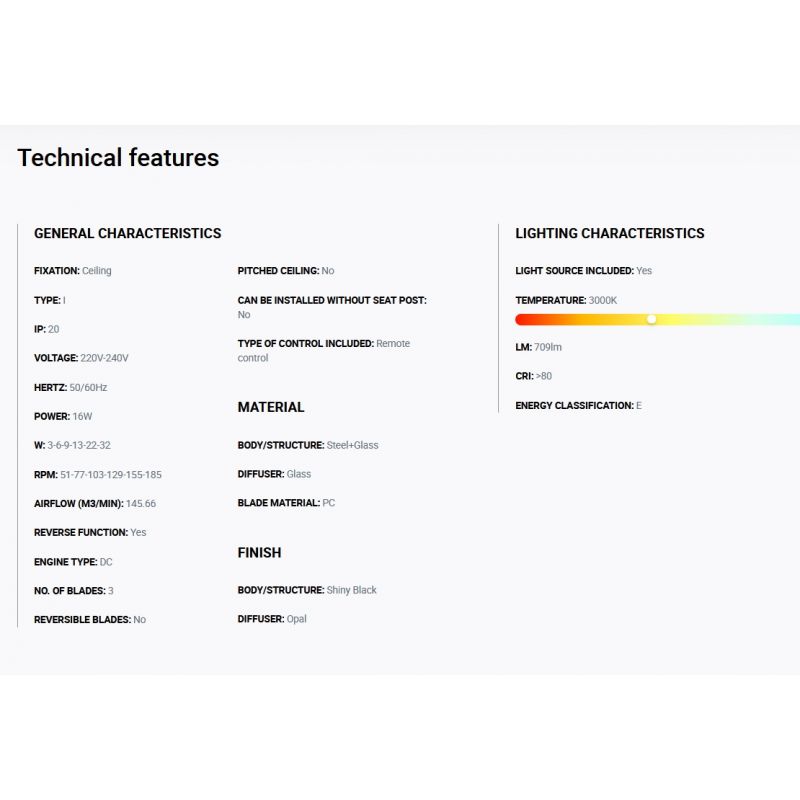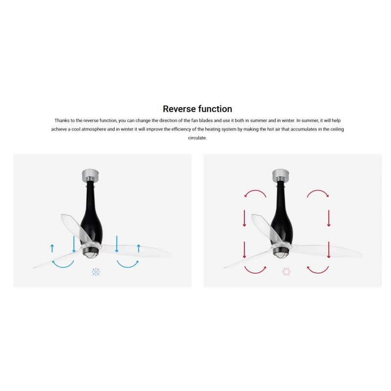| Informatii produs: | lustra cu ventilator si telecomanda, cu functie reversibila iarna-vara, 6 trepte de viteza reglabile3-6-9-13-22-32Watt si 51-77-103-129-155-185rpm. |