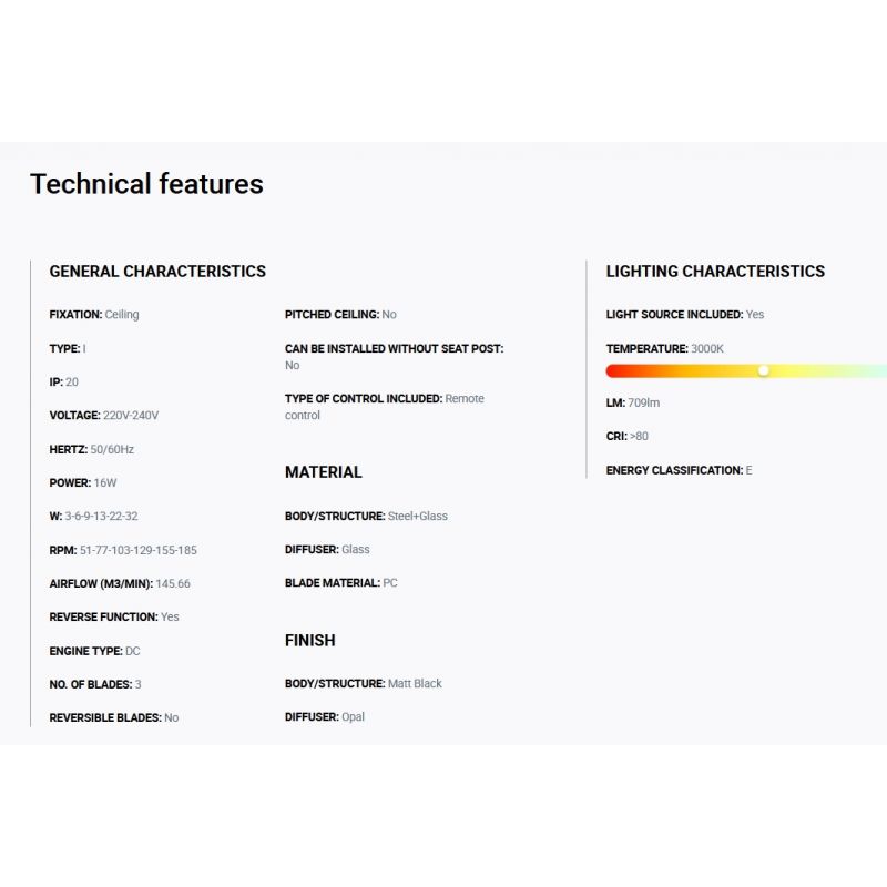 | Materiale | metal, sticla, palate PC transparete, difuzor opal |
