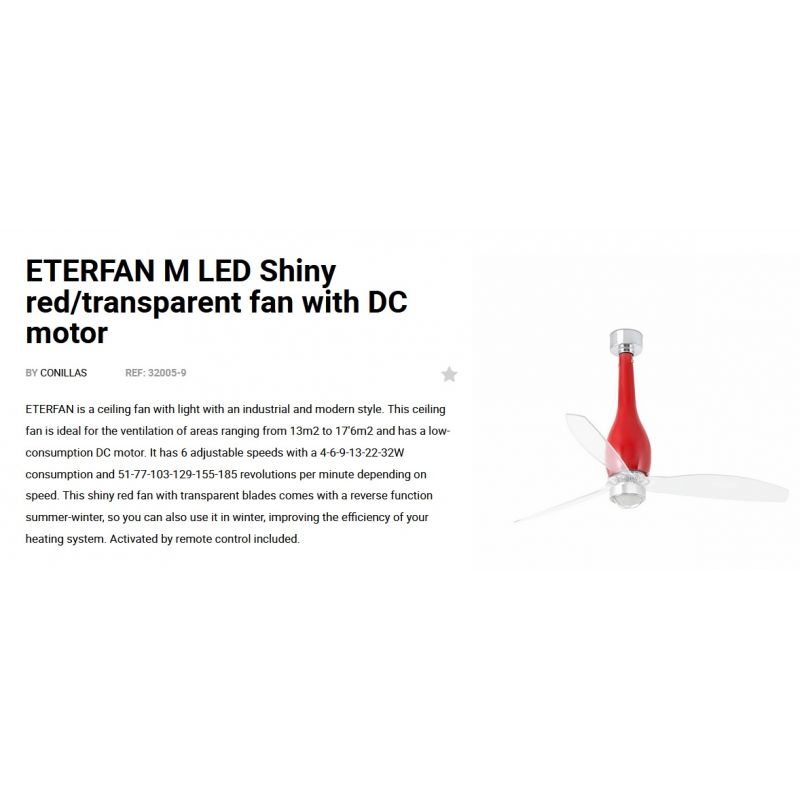 | Informatii produs: | lustra cu ventilator si telecomanda, cu functie reversibila iarna-vara, 6 trepte de viteza reglabile3-6-9-13-22-32Watt si 51-77-103-129-155-185rpm. |