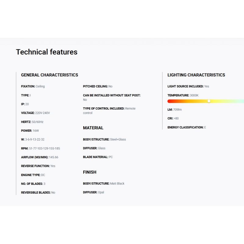| Materiale | metal, sticla, palate PC negru mat, difuzor opal |