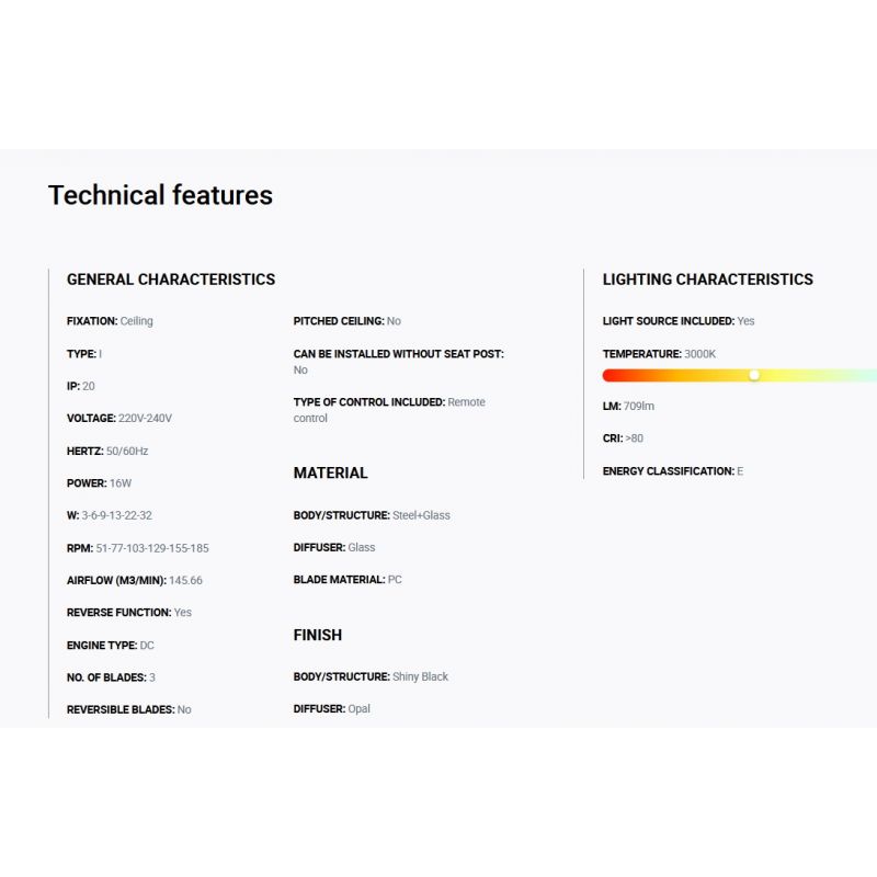 | Informatii produs: | lustra cu ventilator si telecomanda, cu functie reversibila iarna-vara, 6 trepte de viteza reglabile3-6-9-13-22-32Watt si 51-77-103-129-155-185rpm. |
