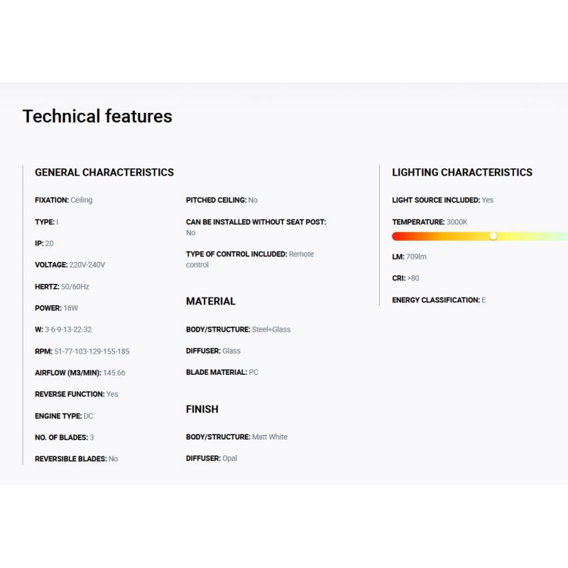 | Informatii produs: | lustra cu ventilator si telecomanda, cu functie reversibila iarna-vara, 6 trepte de viteza reglabile3-6-9-13-22-32Watt si 51-77-103-129-155-185rpm. |