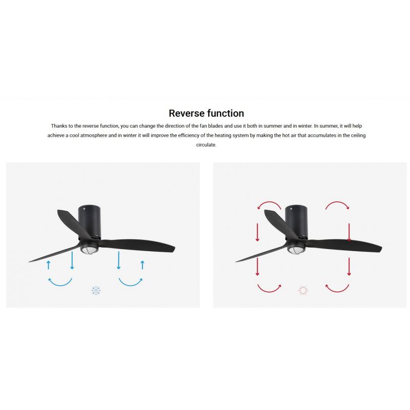 | Informatii produs: | lustra cu ventilator si telecomanda, cu functie reversibila iarna-vara, 6 trepte de viteza reglabile3-6-9-13-22-32Watt si 51-77-103-129-155-185rpm. |