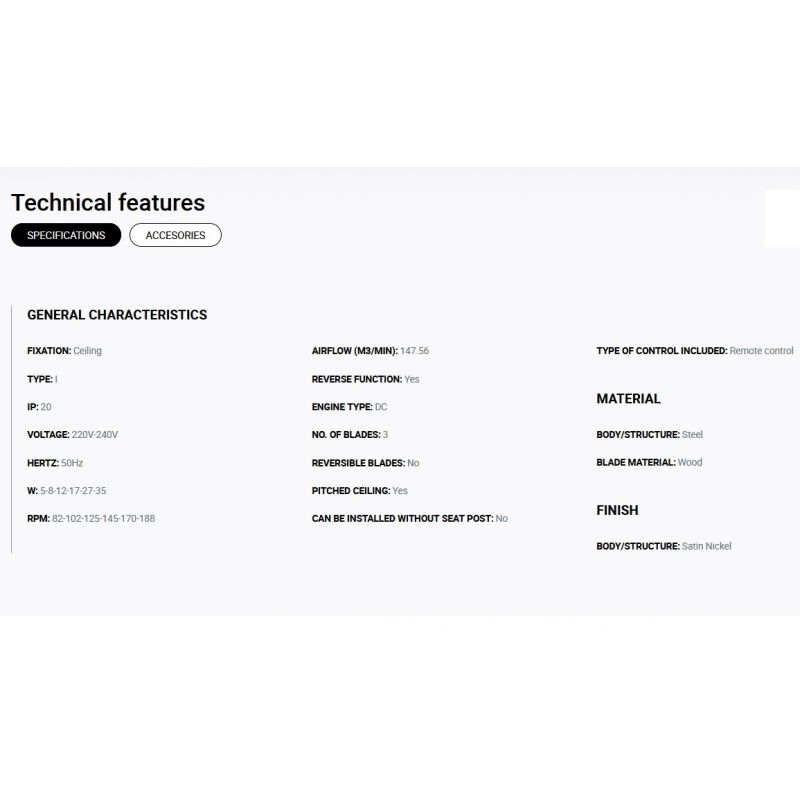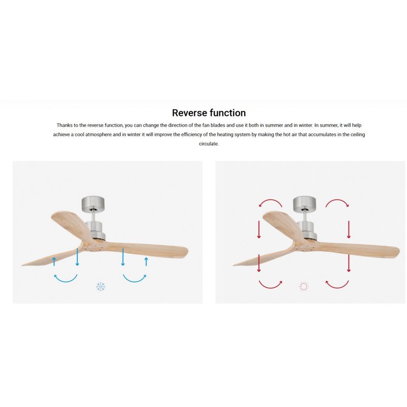 | Informatii produs: | ventilator de tavan cu functie reversibila iarna-vara, actionat prin telecomanda (inclusa) cu 6 trepte de viteza reglabile 5-8-12-17-27-35Watt si 82-102-125-145-170-188rpm |