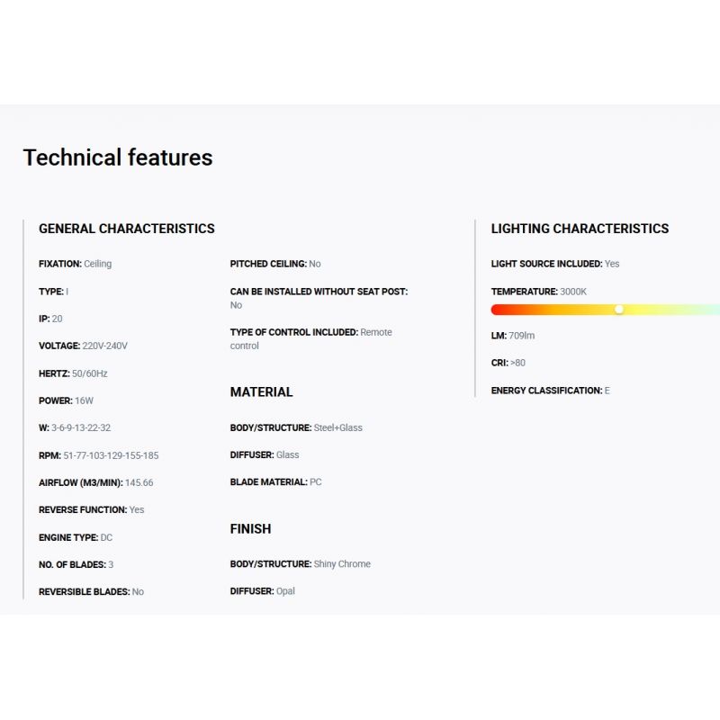 | Materiale | metal cromat, sticla, palate PC transparent, difuzor opal |